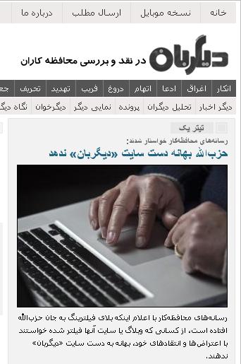 سایت ضد انقلاب دیگربان در مقاله ای با عنوان «افزایش نارضایتی حزب الله از تشدید فیلترینگ» سعی بر ماهیگیری از آب گل آلود دارد. این سایت ضد انقلاب در ادامه با اشاره به فیلتر شدن وبلاگ های «زهرا اچ بی» ، «خیزران» و سایت تریبون مستضعفین اشاره می کند و می گوید: